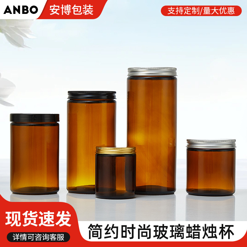 茶色のガラスの空のボトルキャンドル缶詰めボトルアロマキャンドルホルダーダーク遮光アルミカバーマスククリームボトル卸売