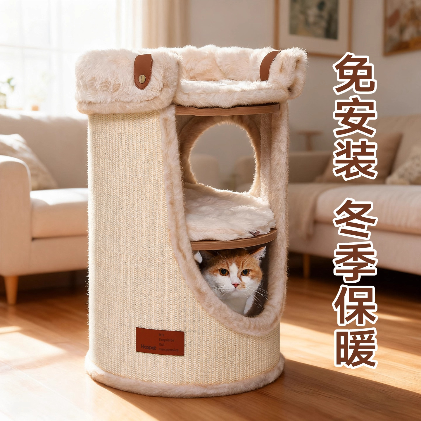 Hoopet猫爬架小户型不占地猫窝猫抓板一体家用多层冬季保暖剑麻桶