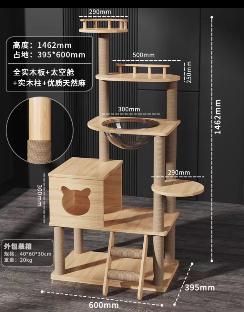 DHZ猫の棚の猫の巣の猫の木の一体の猫の跳台の猫のかごの実木の大型の剣麻の大きい猫の別荘の家庭用