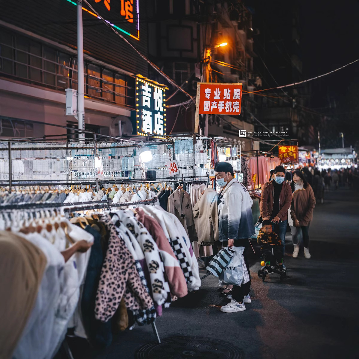 魅力的な服の屋台、夏のメンズ半袖卸売、3元から5元、卸売市場の屋台