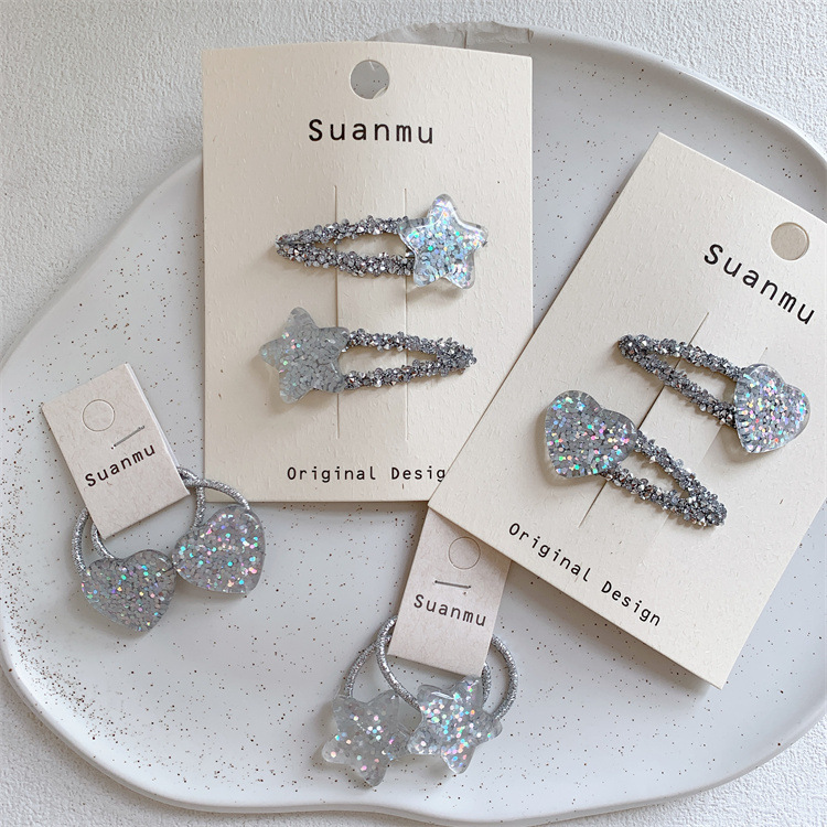 子供のスパンコール愛の五角星の髪は輪の側の前髪の砕毛bbを挟んで女の子の髪の筋のひもを刺します。