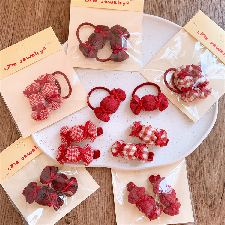 新しい子供の赤いキャンディーのヘアピンの女の子の格子縞のヘアピン