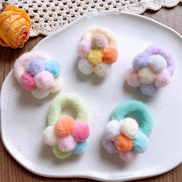 女の子の秋冬毛玉の花の毛の輪の高弾は太くて丈夫な髪のひもの王女の花の馬尾の皮の筋をプラスします。