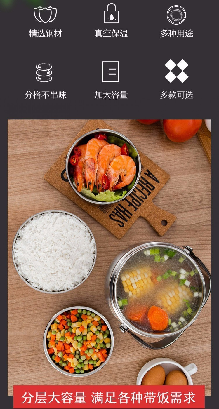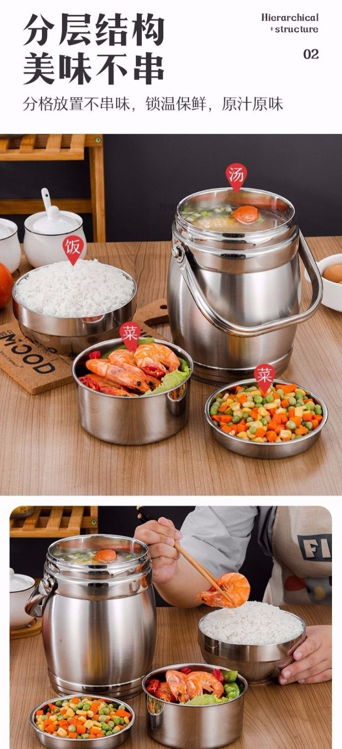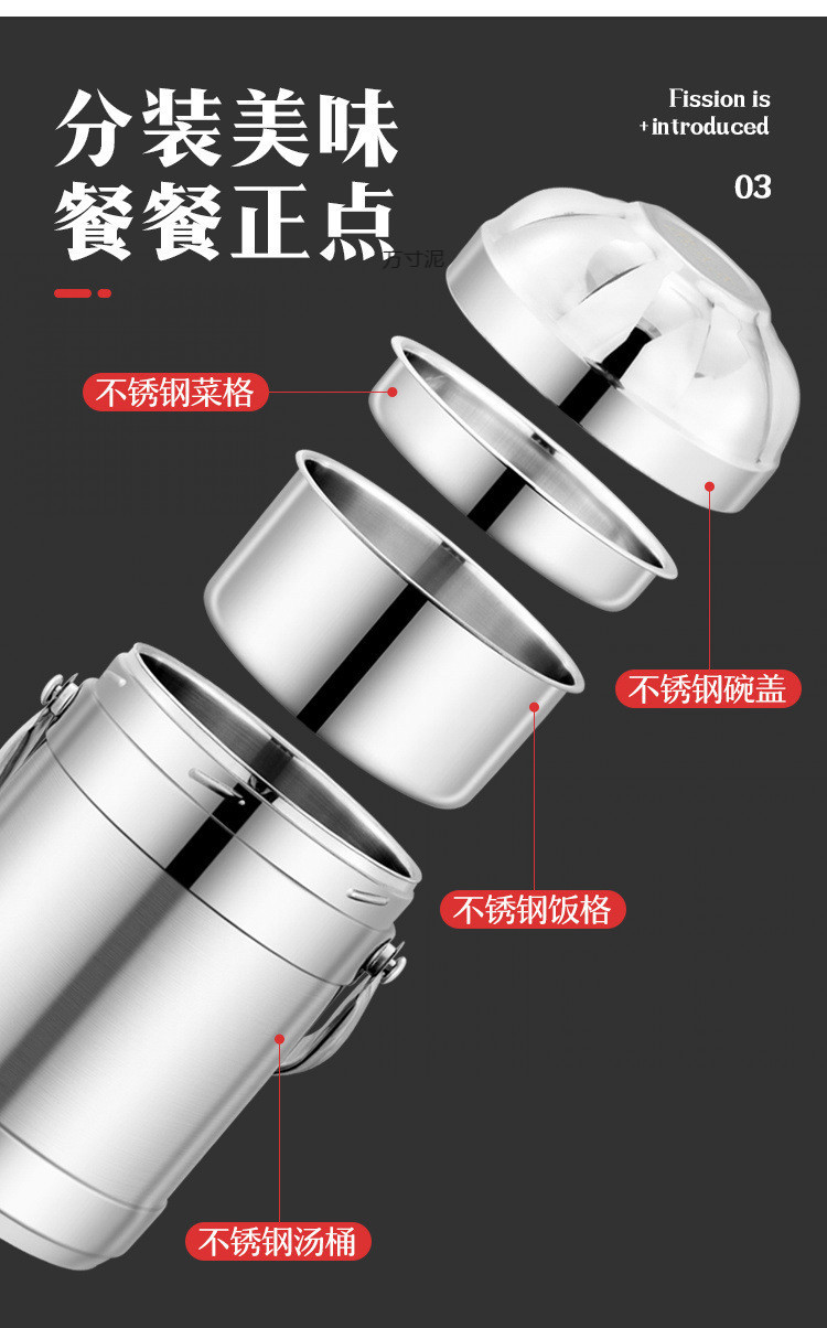保温弁当箱碗蓋ステンレス大容量真空提鍋長長長保温桶3階学生成人弁当箱