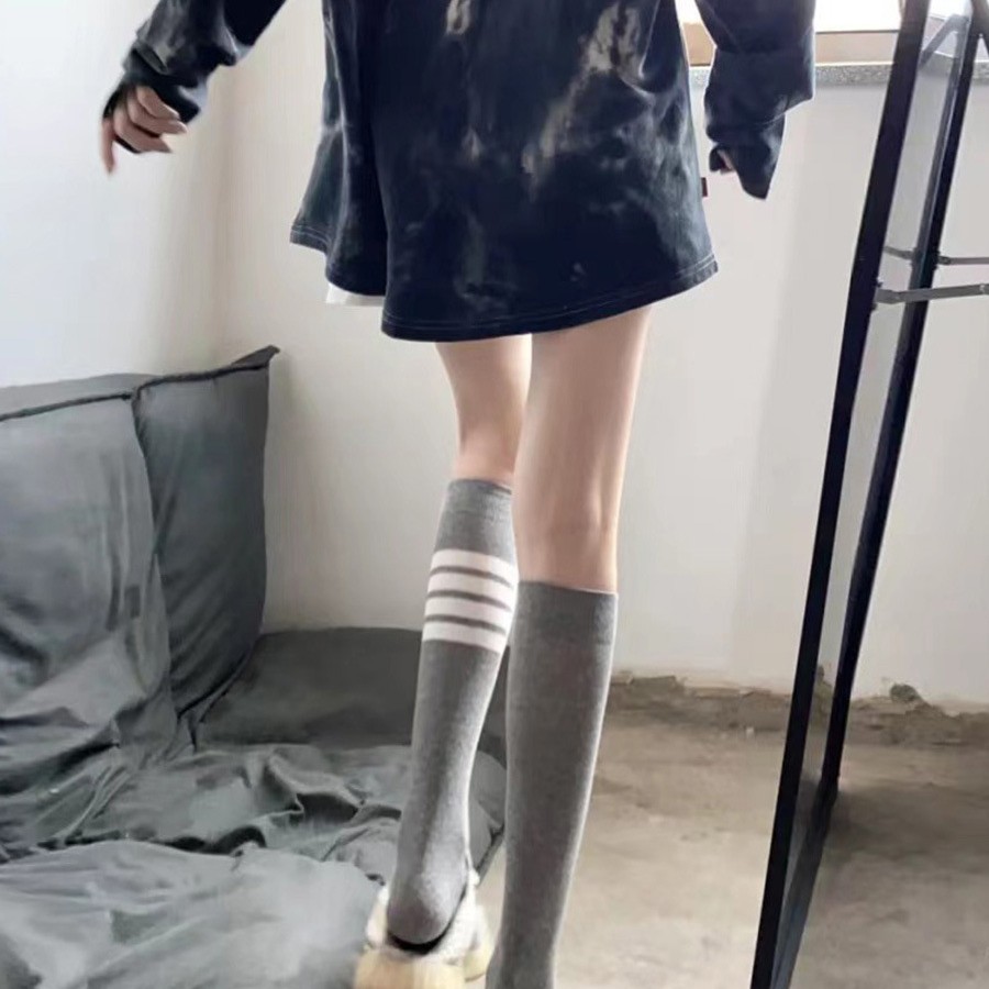韩版四条杠袜子棉条纹中筒袜小腿袜JK日系小腿袜