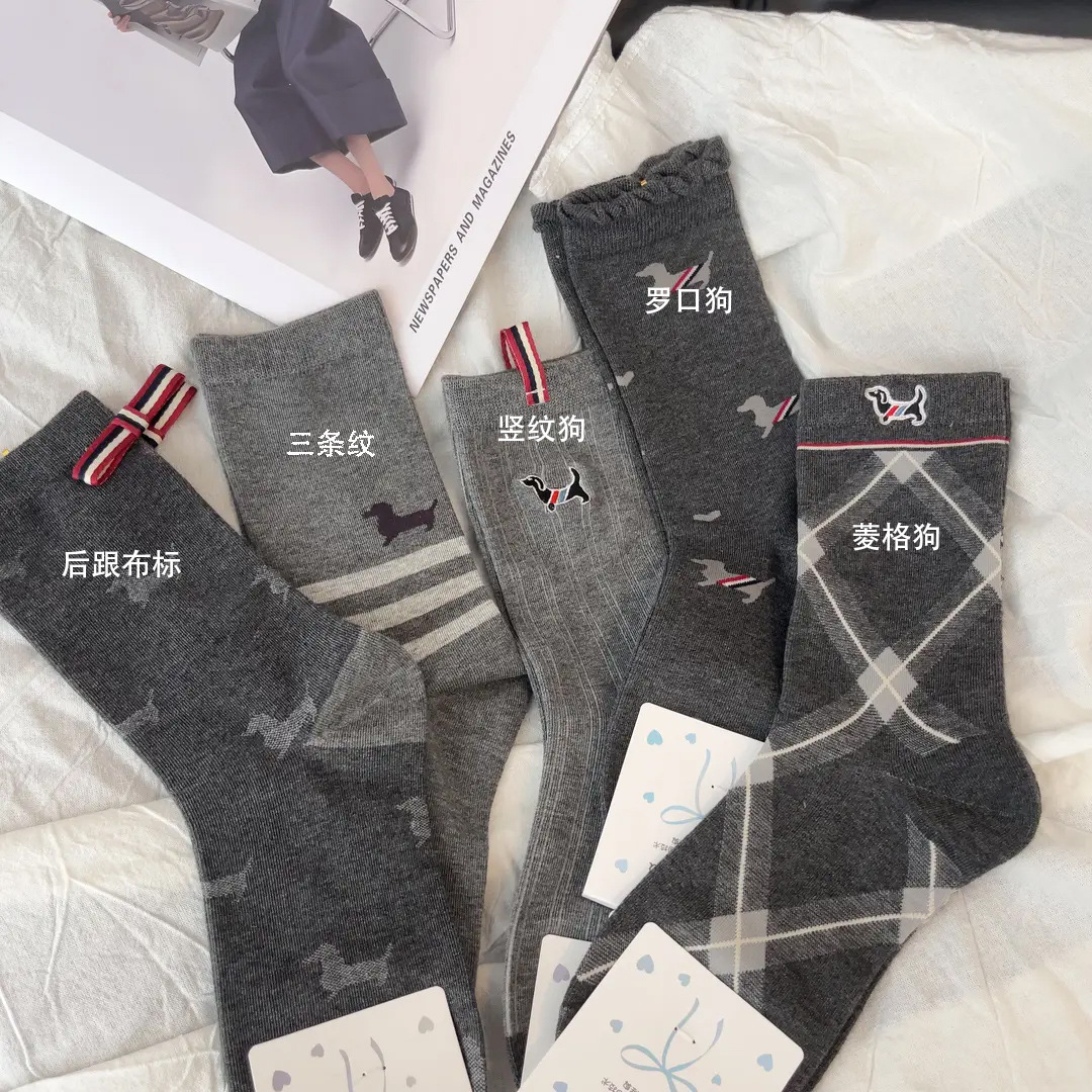 新款秋季TB腊肠狗中筒袜ins风个性布标堆堆袜潮牌无骨袜子