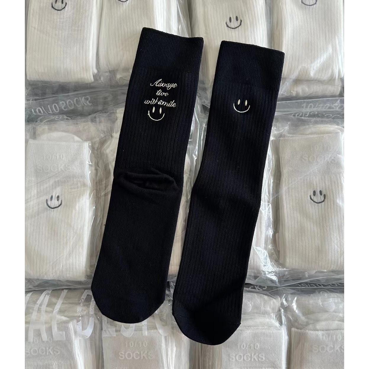 100% 純綿新疆綿靴下男女スポーツソックス白黒純色秋冬四季学生カップル防臭ソックス