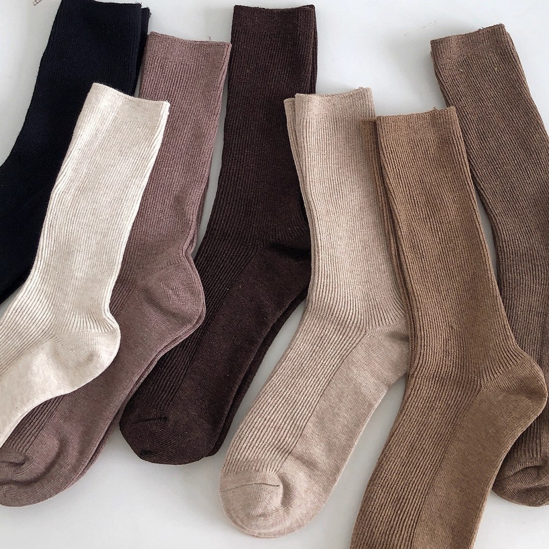 美拉德袜子女秋冬中筒袜棉秋款厚棕色堆堆袜女黑色中筒袜ins潮