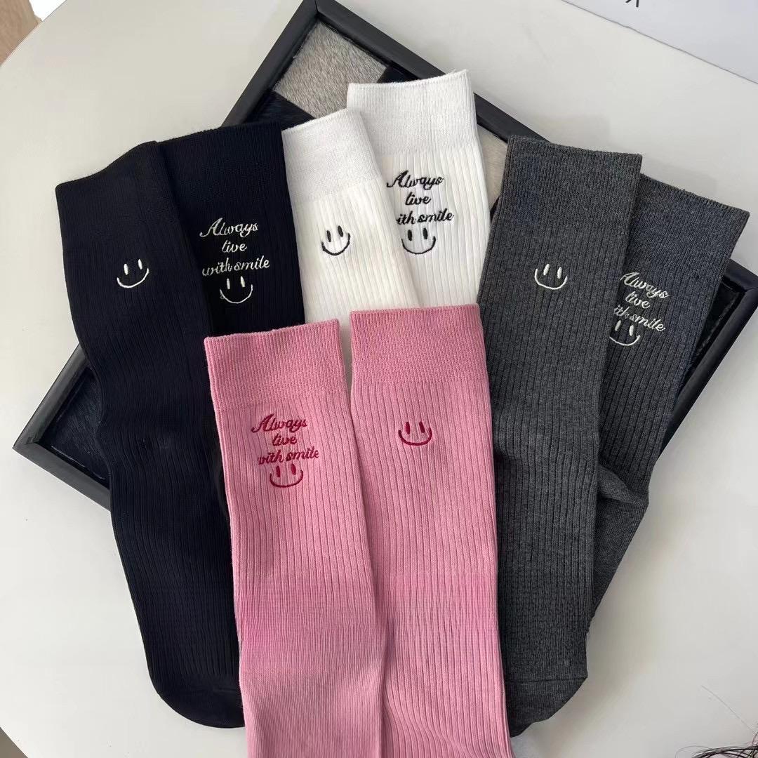 AB非対称笑顔とサメのズボンのオシドリの靴下の女性の中筒の外はins潮の街頭の秋冬のストッキングを着ます。