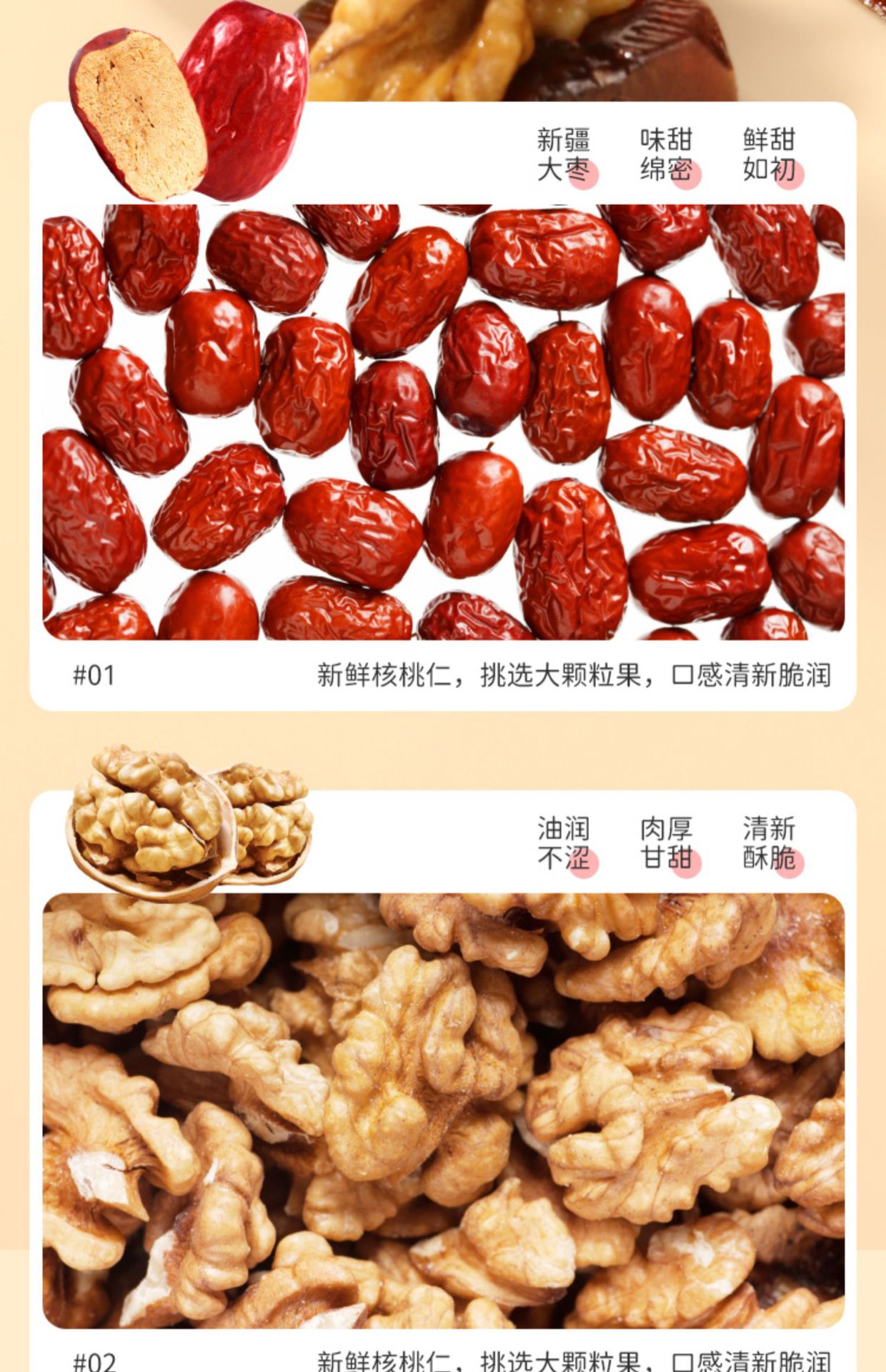 メーカー直送のナツメとくるみ入り新疆和田産ナツメ、ナツメとくるみ入り個包装スナック