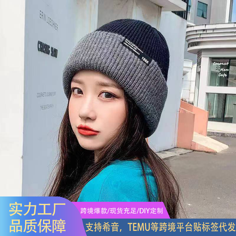 网红帽子毛线帽女秋冬韩版百搭潮素颜贴标保暖冷帽大头围毛针织帽