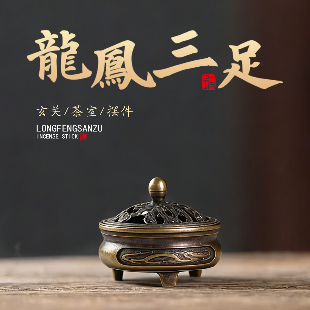 跨境热销小号龙凤呈祥香炉盘香无粘粉仿古创意茶道香道线香