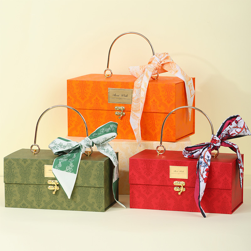 メーカーの軽い贅沢な風の金属の手提げの手のギフトボックスの新年の赤いギフトボックスの親友の結婚の喜糖の手のギフトボックス