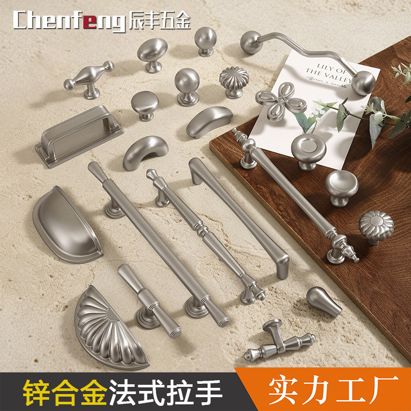 法式锌合金衣柜门拉手现代简约哑光拉丝银色抽屉单孔橱柜实心把手