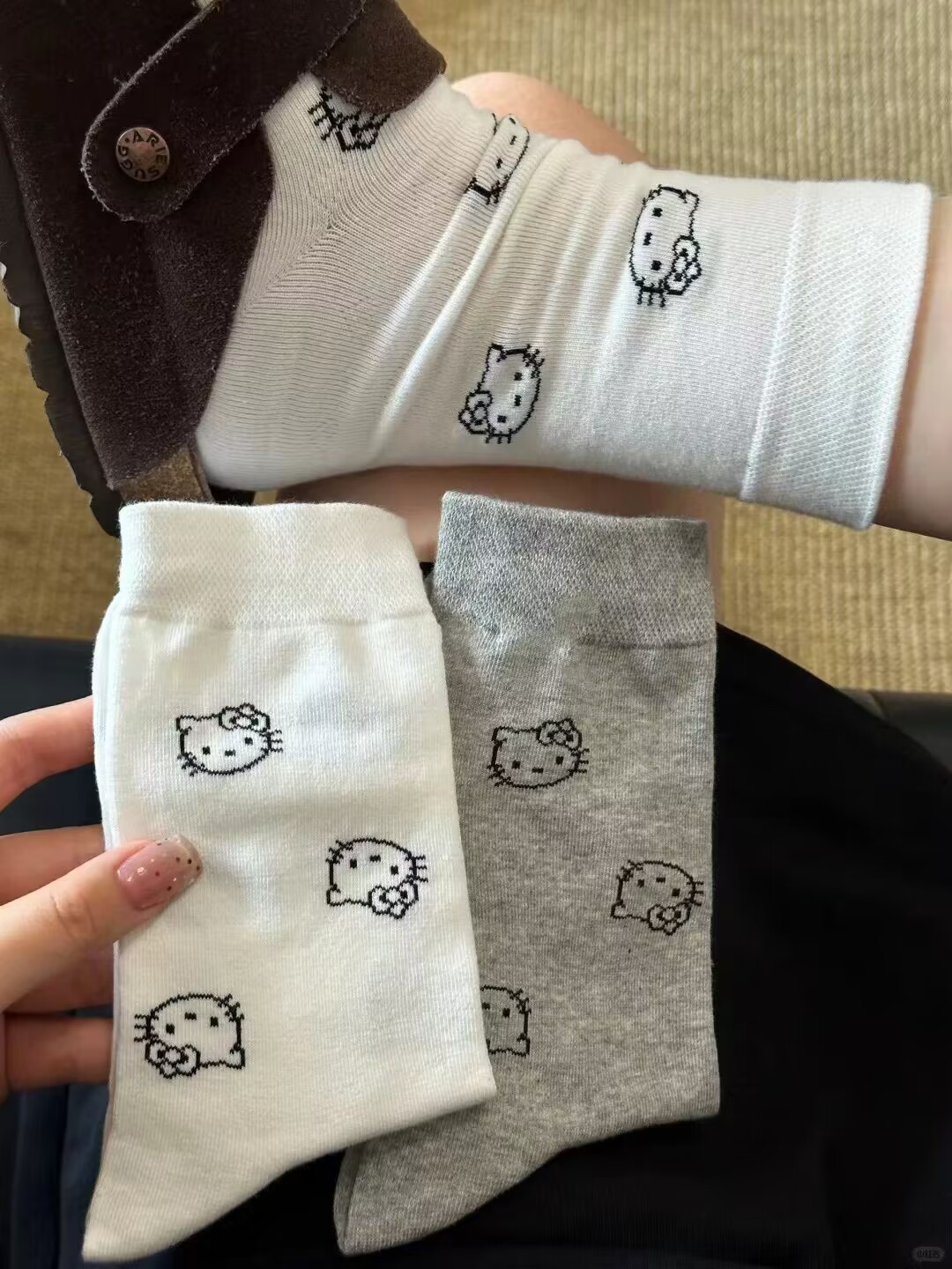 韓国インデザイン全身キティラブガールパイルソックス春と秋の漫画カレッジスタイルボーンレスパイルソックス
