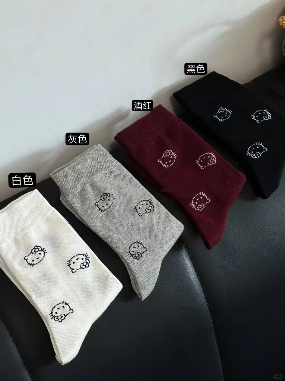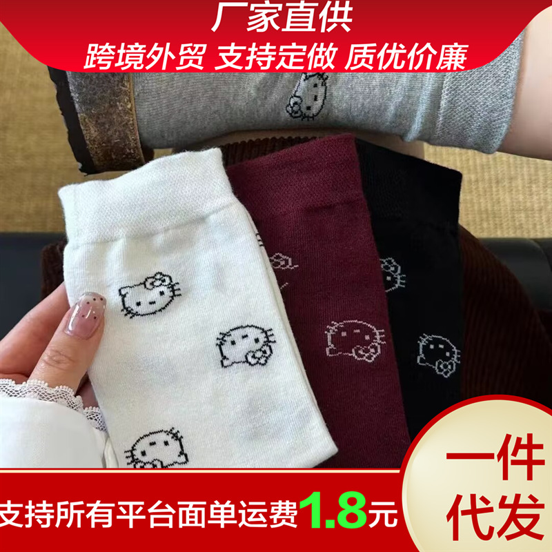 秋冬新品卡通kitty猫袜子女中筒安可拉红韩版ins潮堆堆袜诸暨袜业