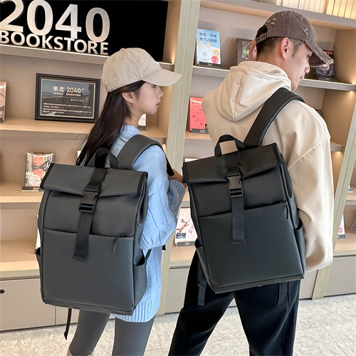 跨境大容量15.6寸商务电脑包卷口卷盖双肩包潮牌机能简约双肩背包