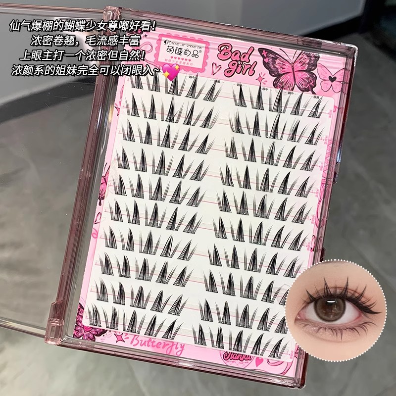 萌えまつげ尚品無料カラーブラウン蝶少女の偽まつげ自然巻きシミュレーション濃密上鏡自己接着まつげ