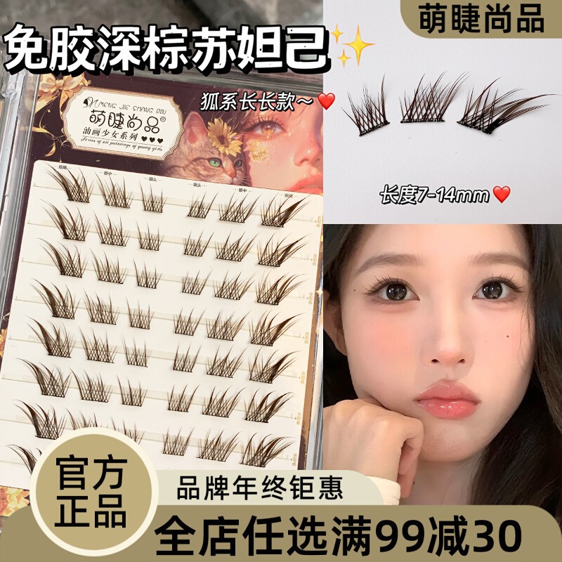 かわいいまつげ高品質つけまつげ接着剤不使用ブラウン Suda Ji 九尾キツネつけまつげシングルクラスター斜めセグメント化自然シミュレーション