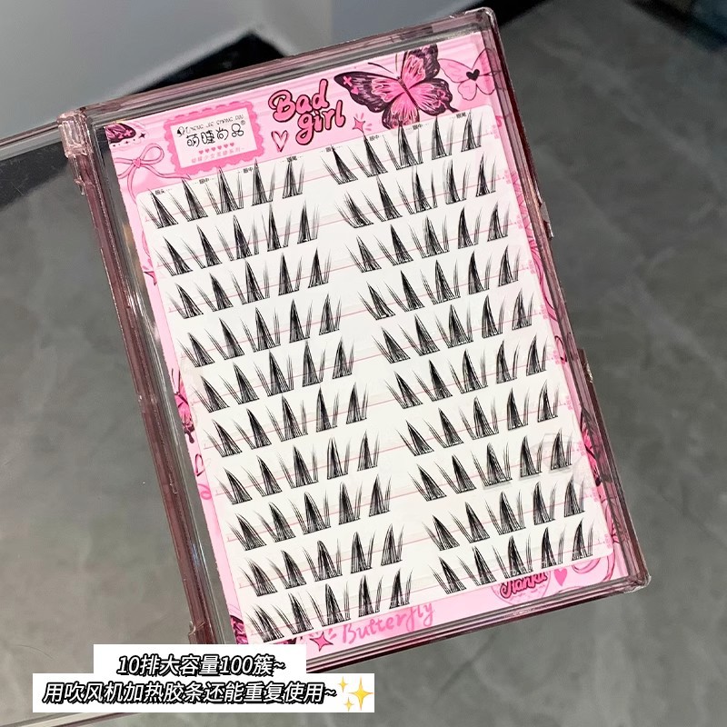 萌えまつげ尚品10列大容量無糊脱怠け者魚尾偽まつげ自然単クラスタ純欲まつげ