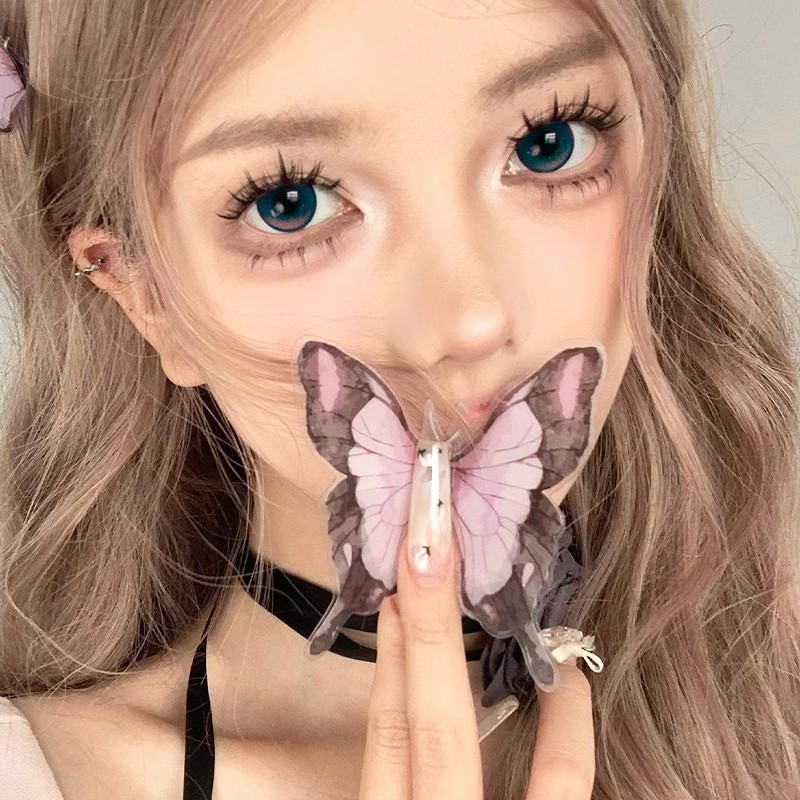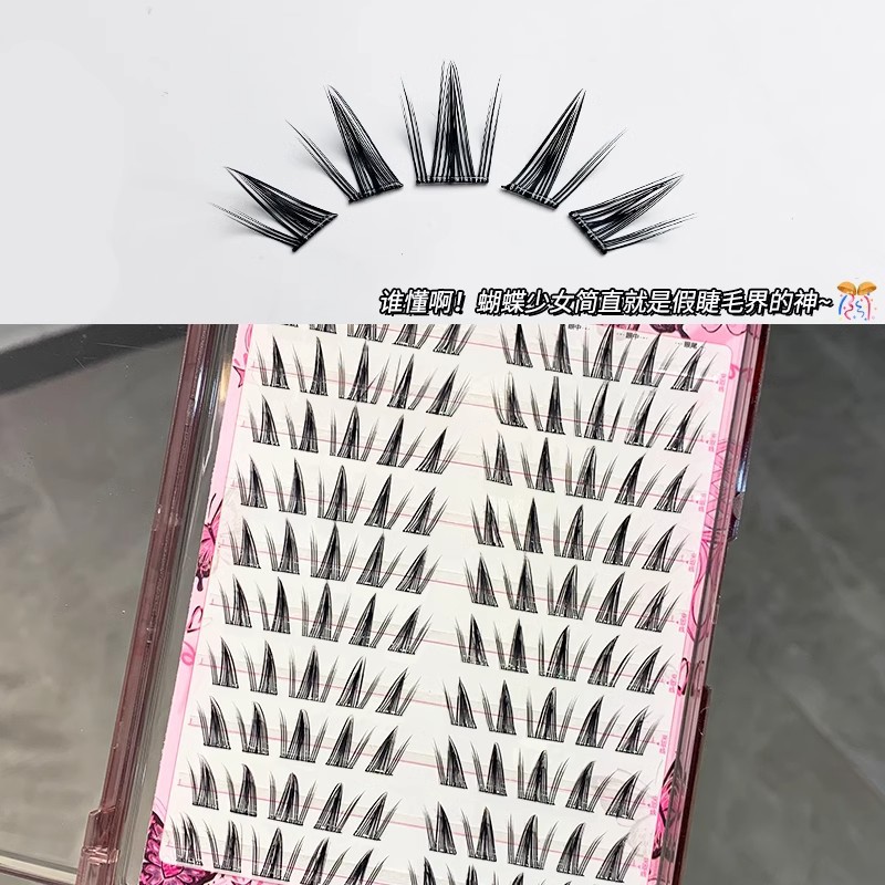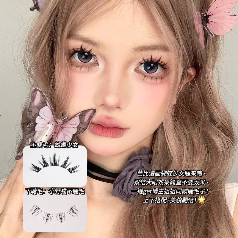 蝶の少女の漫画のまつげ! アジア系ギャルのまつげは自然にまつげをつけます。