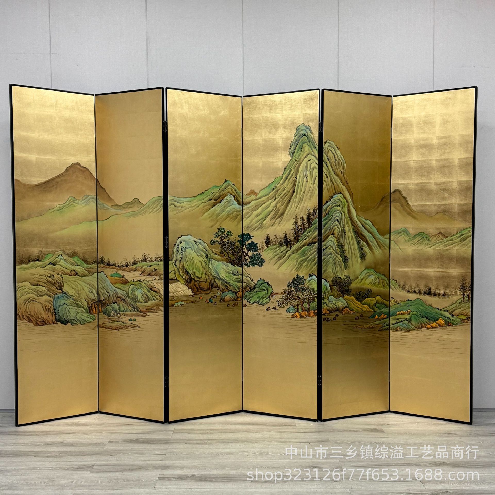 中国式金箔屏風千里江山手描き山水図客間会議室背景遮断移動折り畳み屏風