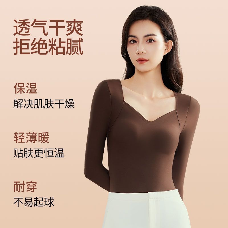 無痕保温下着女性恒温蓄熱帯胸パッド一体式ヒアルロン酸美肌服秋冬底シャツ上着