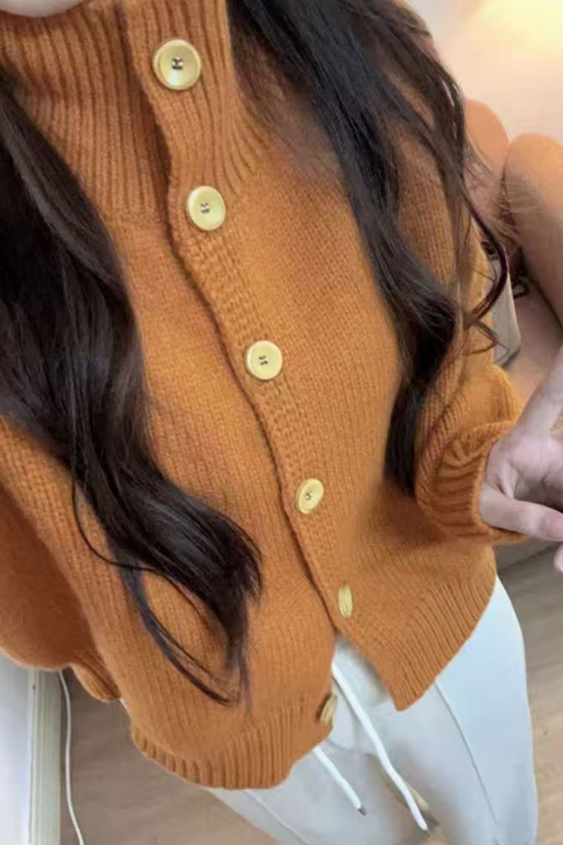 優しい風合いの襟付き角ボタンニットウールカーディガン レディース カシミヤ 秋冬新作 韓国風 ソフトなセータージャケット