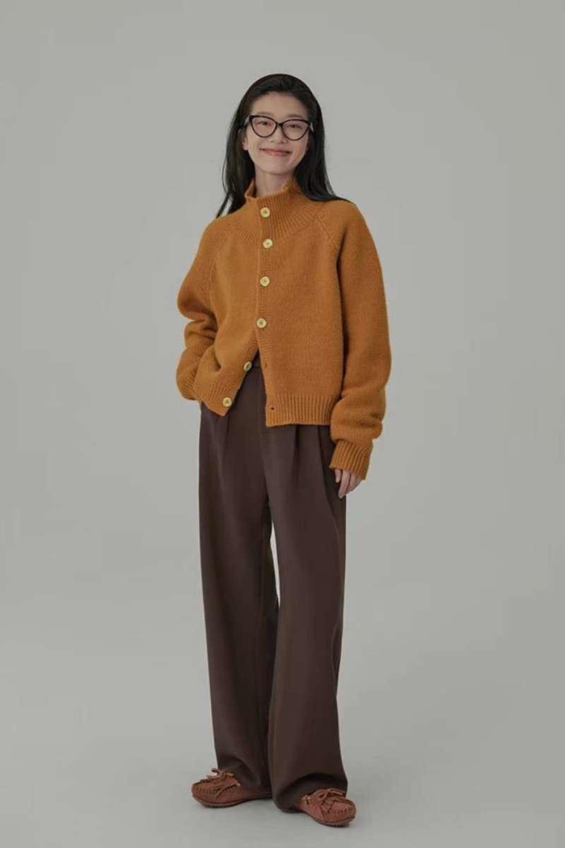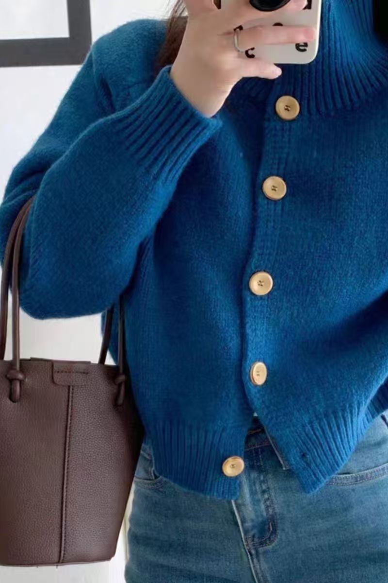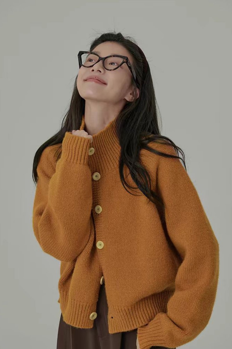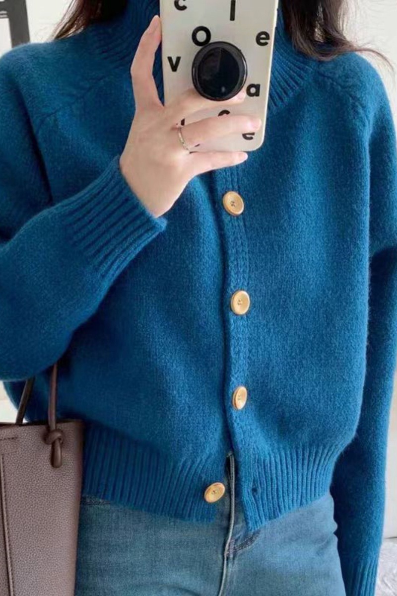欧範洋気純ウールカーディガン女性高襟の短い上着のカシミヤニット立襟セーターコート