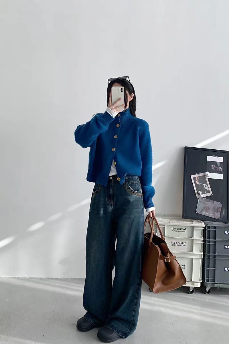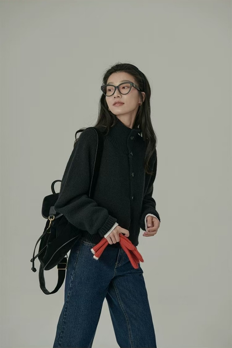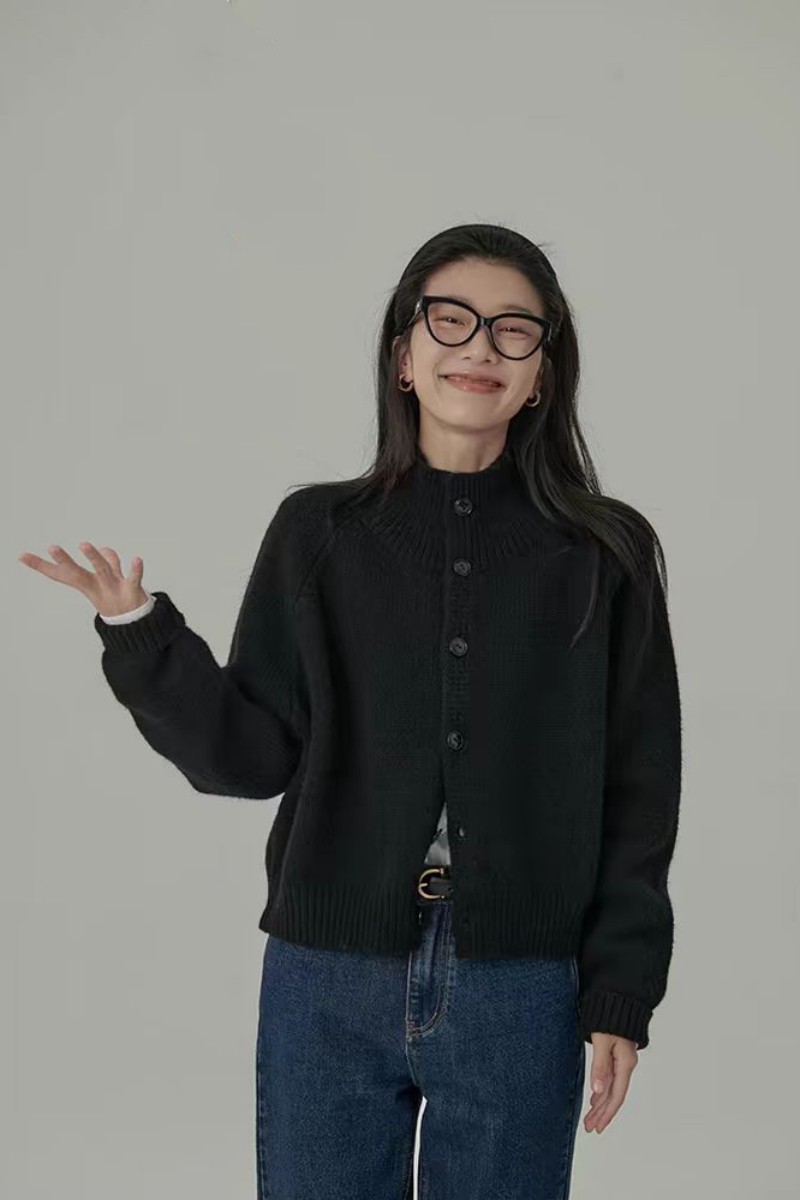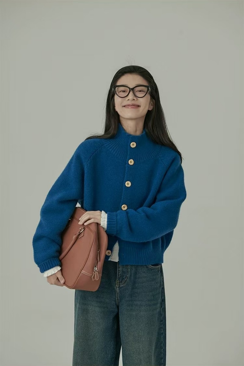 欧範洋気純ウールカーディガン女性高襟の短い上着のカシミヤニット立襟セーターコート