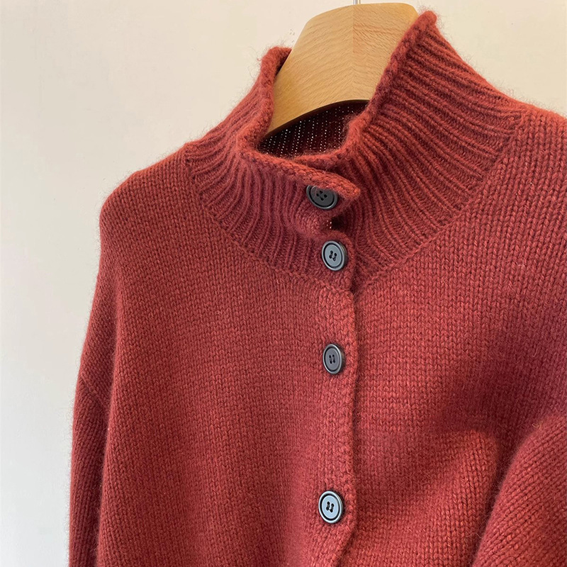 ヨーロッパ2025秋冬新作 オールウールカーディガン レディース 中華風スタンドカラーセーター ニットウェア 厚手ゆったりジャケット