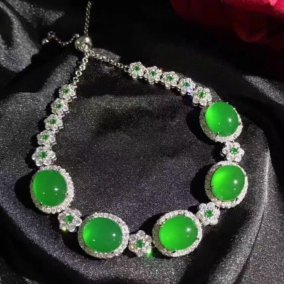 【产品名称】镀银镶嵌冰种玉髓锁骨链套装