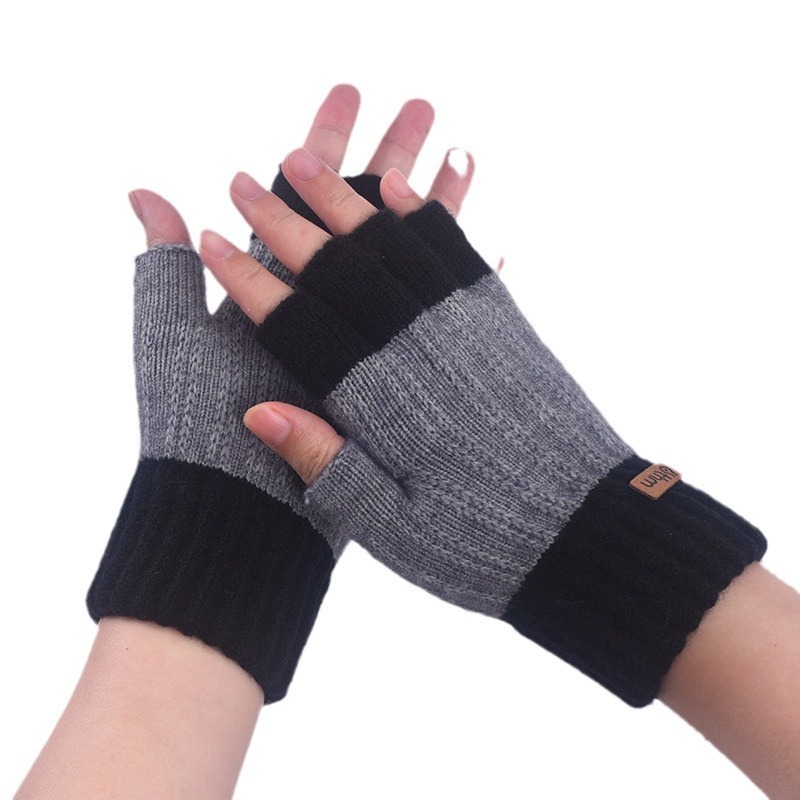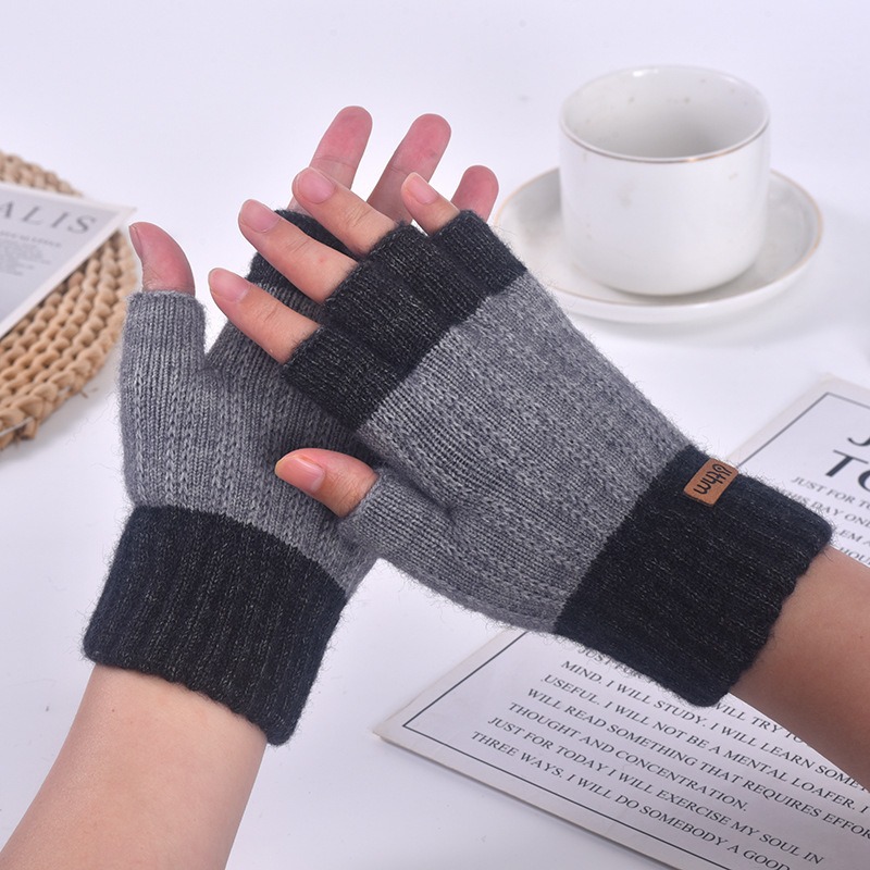 メーカー直販学生半指手袋秋冬防寒保温ベルベット厚手ニット手袋卸売り