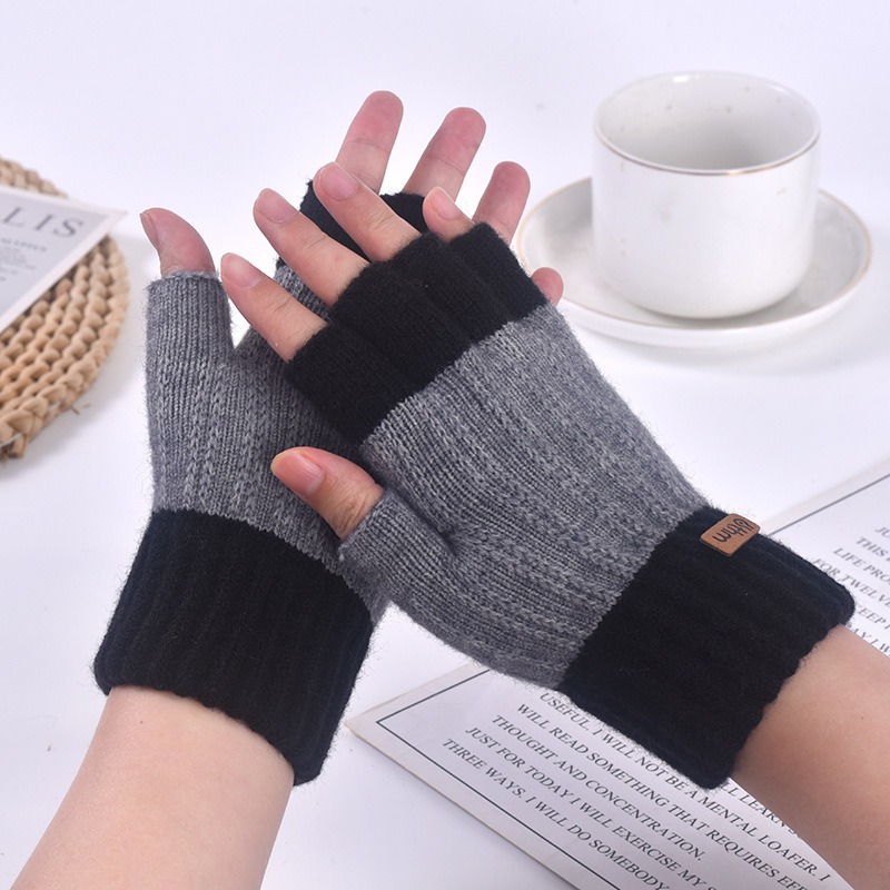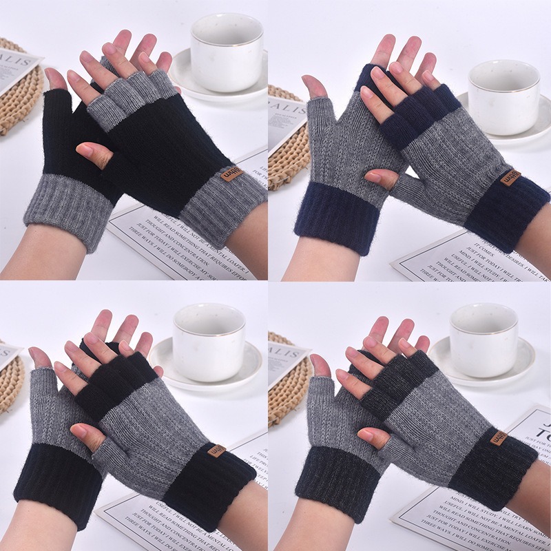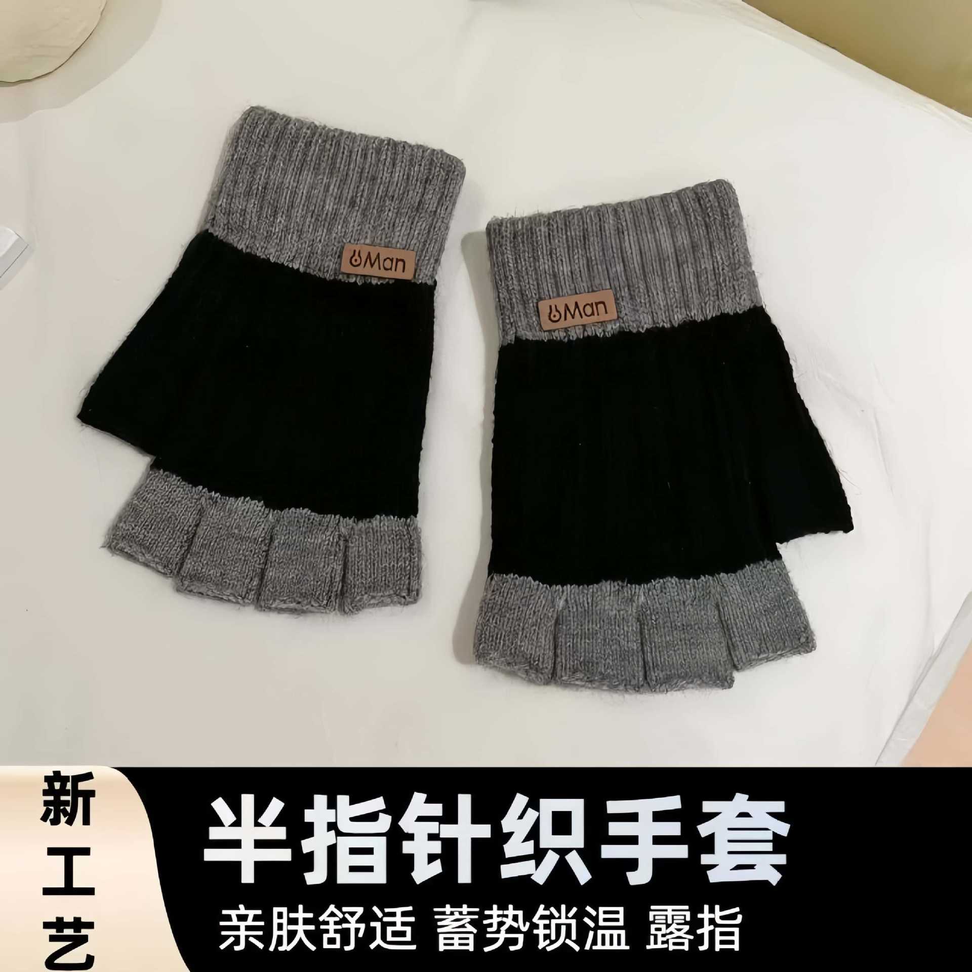 男性の半分の指が厚い保温手袋のメリヤスは、オフィスの学生のベルベットを真似て、純色の手袋を指している