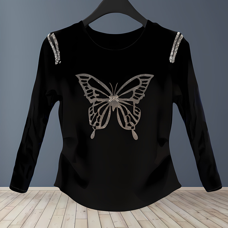 メーカーは好評で、綿の半袖tシャツの女性蝶がビーズのデザイン感があるファッションカジュアルな上着を提供している