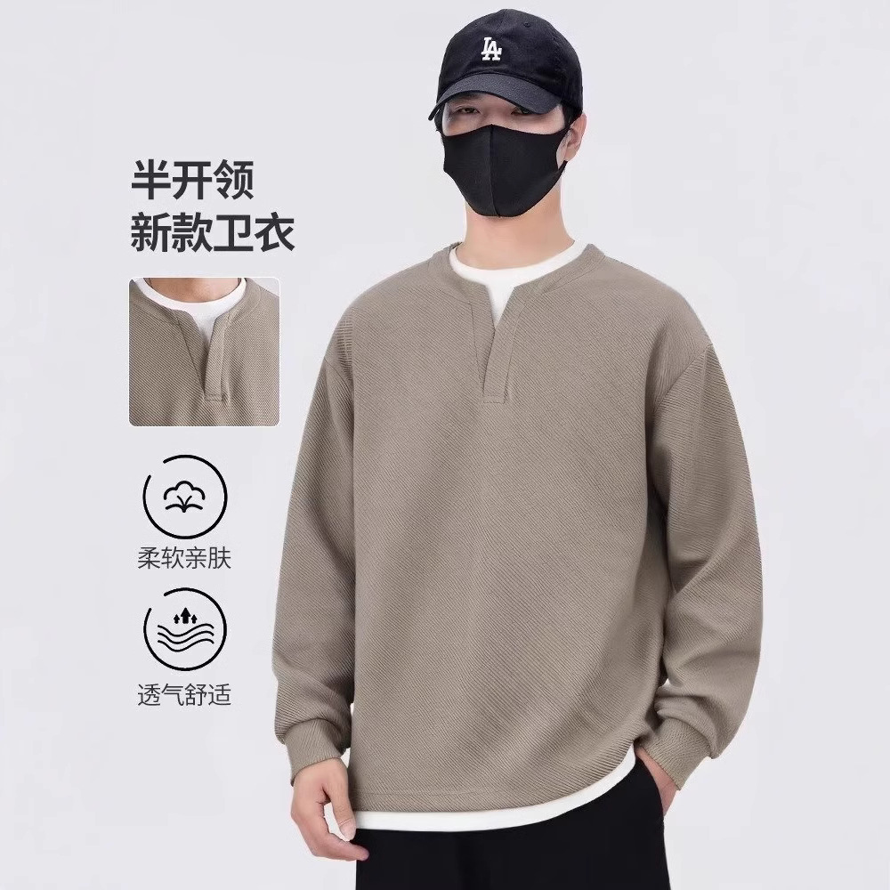 厚手の高級質感の偽ツーピーススウェットシャツメンズ2025春ルーズトレンドプルオーバーカジュアル秋ボトリングシャツ