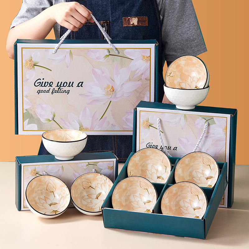 陶磁器ボウル食器セット、下絵付けボウルセット、ギフトボックス、オープニングセール記念品、食器セット