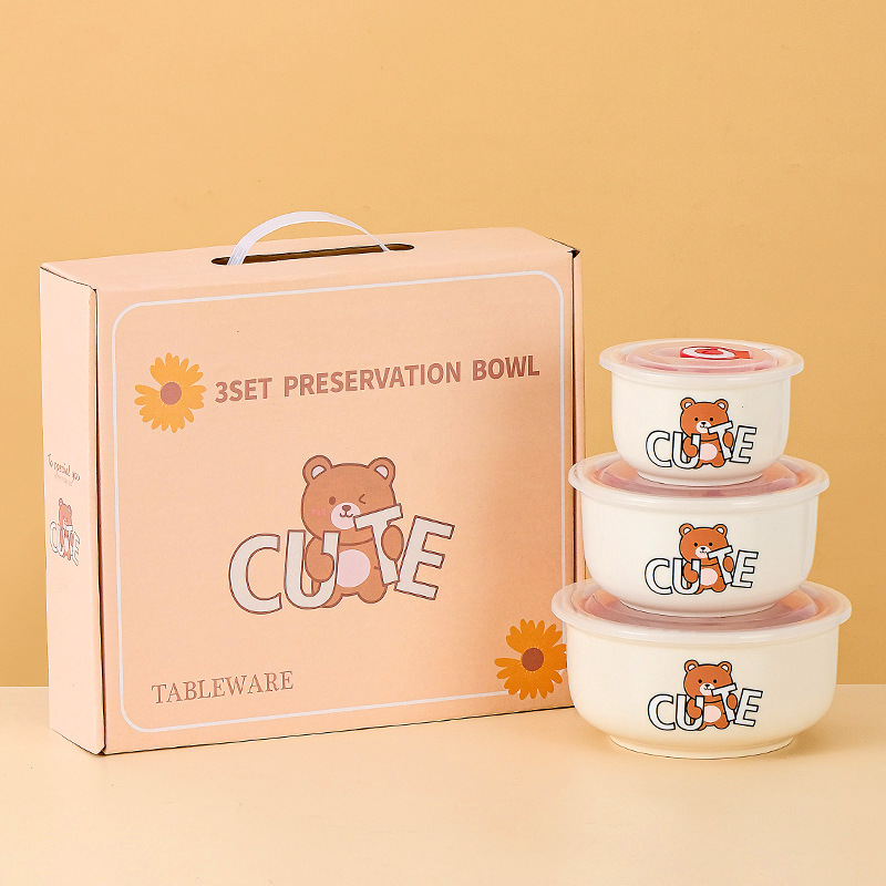 密封鮮度保持ボウル漫画 3 点セットクリエイティブセラミック食器弁当箱寮インスタントラーメンボウル実用的なお土産卸売