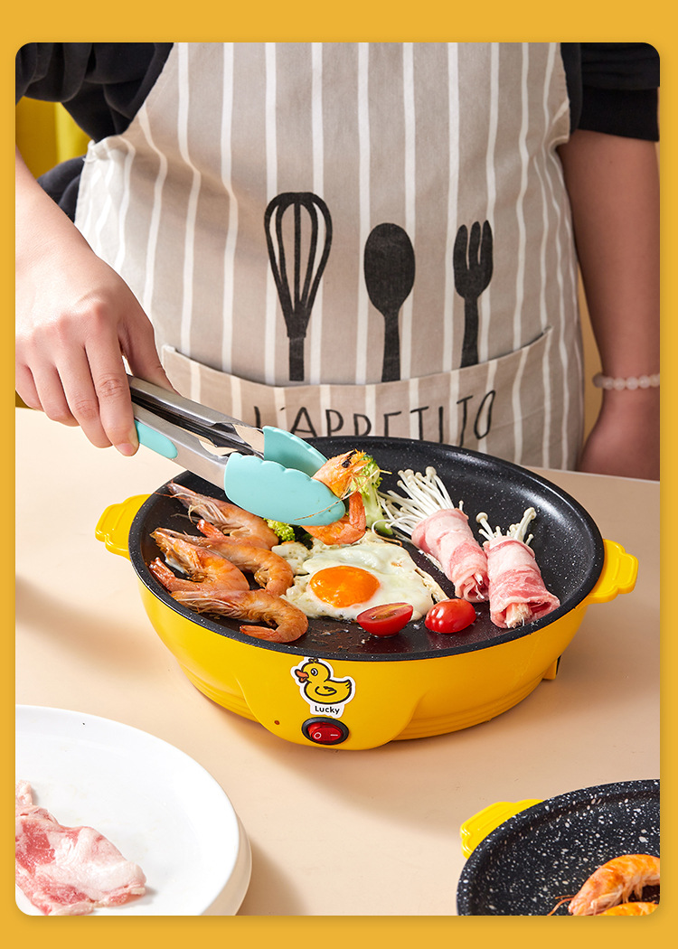 源メーカー製ハニカム電気グリル、全周加熱バーベキュープレート、ノブ付き家庭用フライ&グリル一体型バーベキューコンロ、鍋