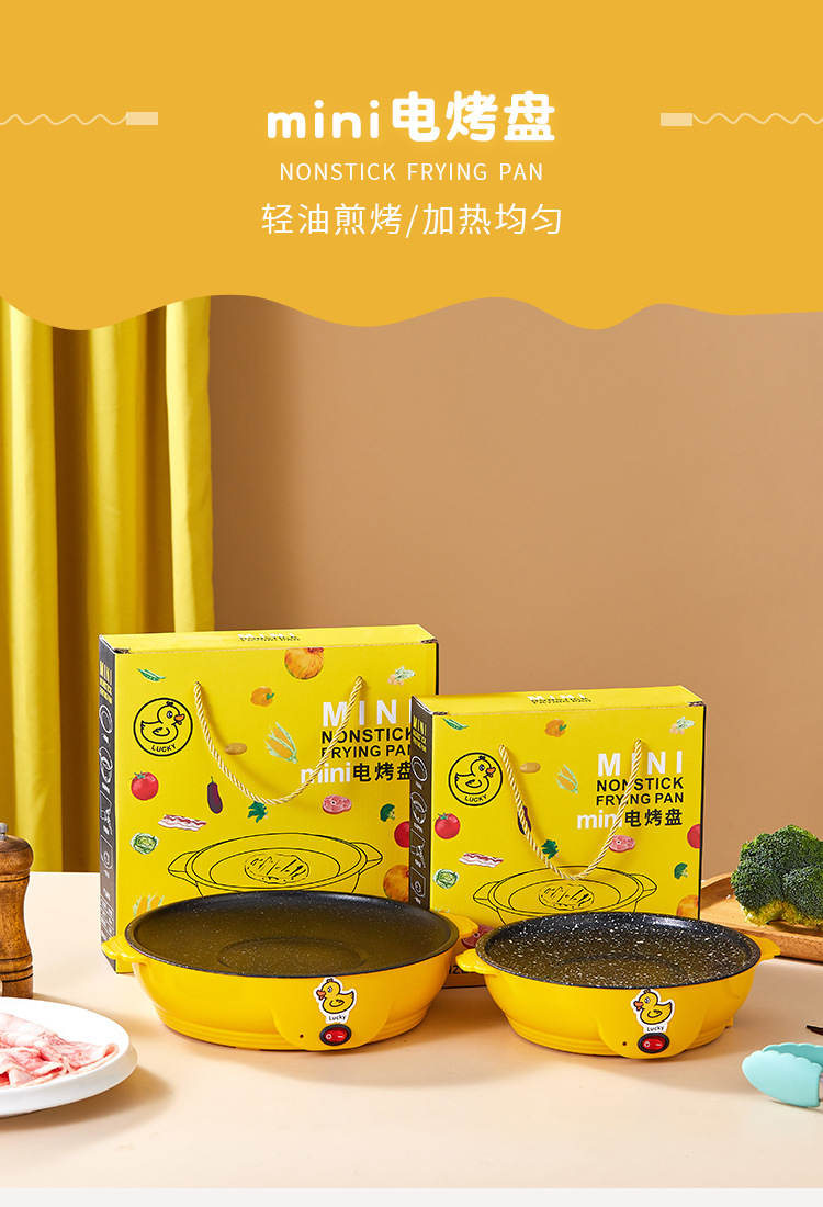 一体式迷你外卖电烤炉 家用便捷无烟不粘电煎锅 礼品烤肉炉厂家
