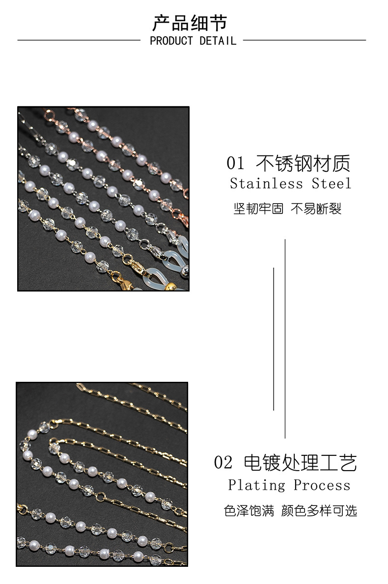 ステンレス高保色ファッション美観真珠眼鏡チェーン眼鏡チェーン眼鏡ストラップ防失チェーン十字金