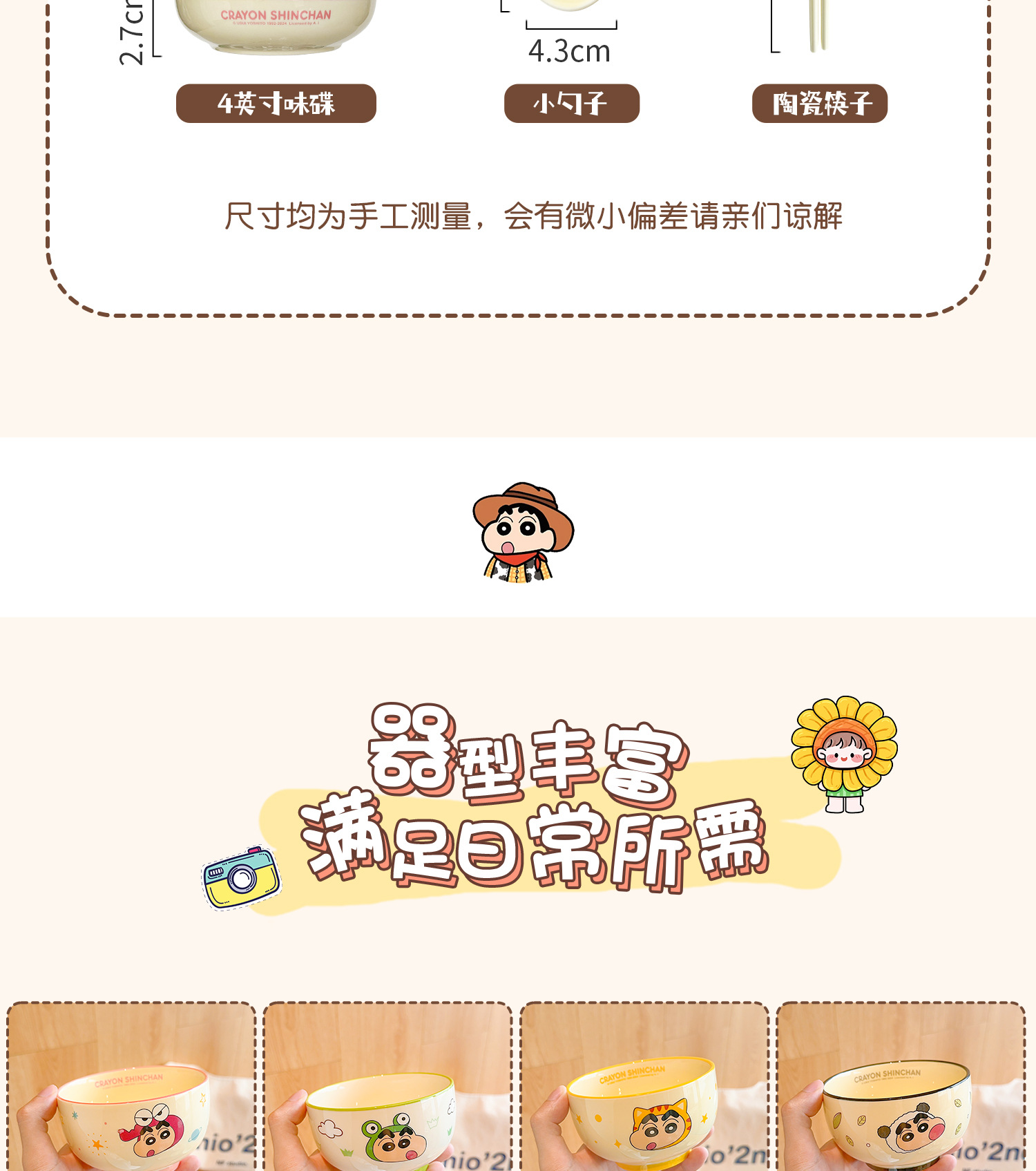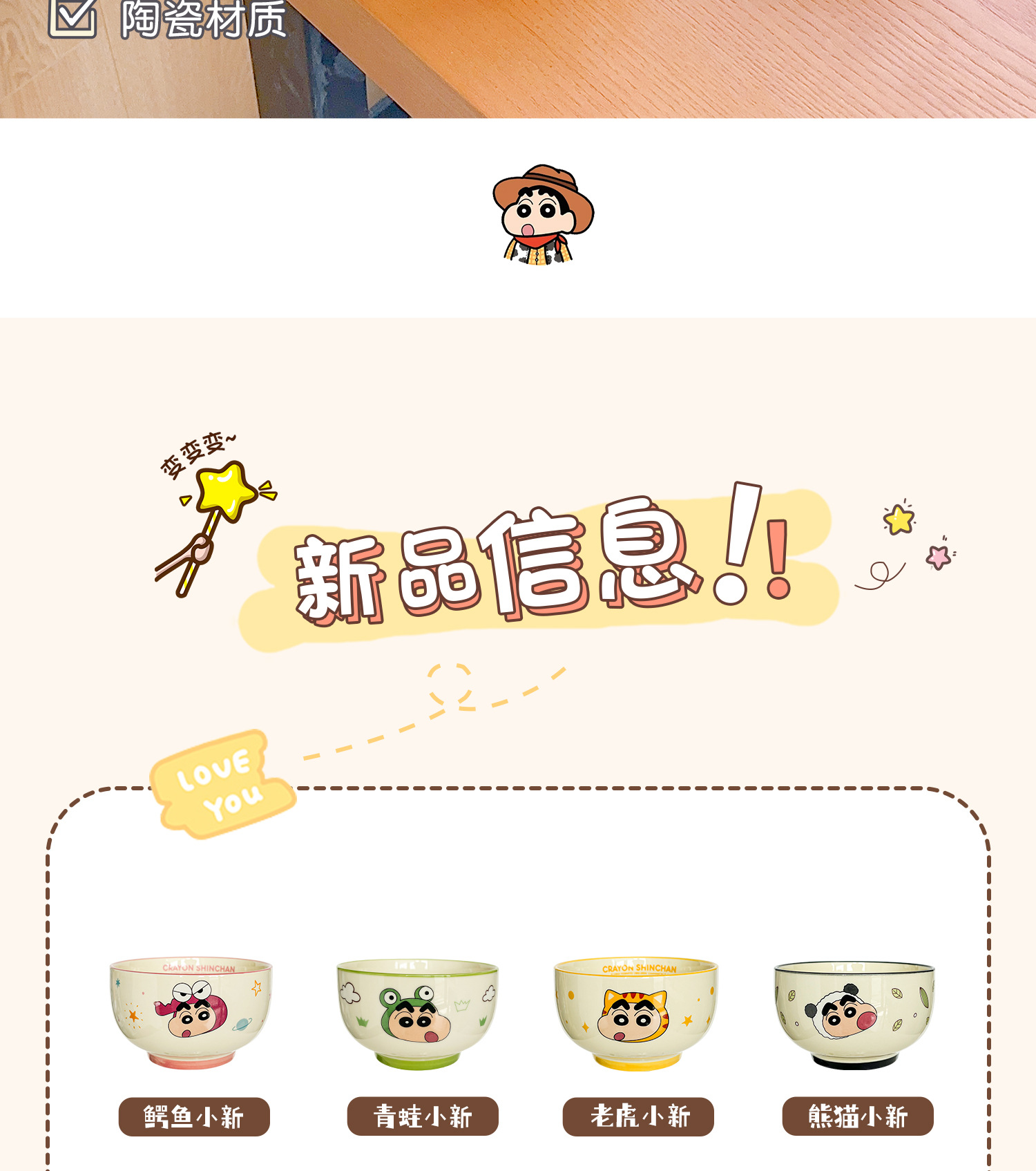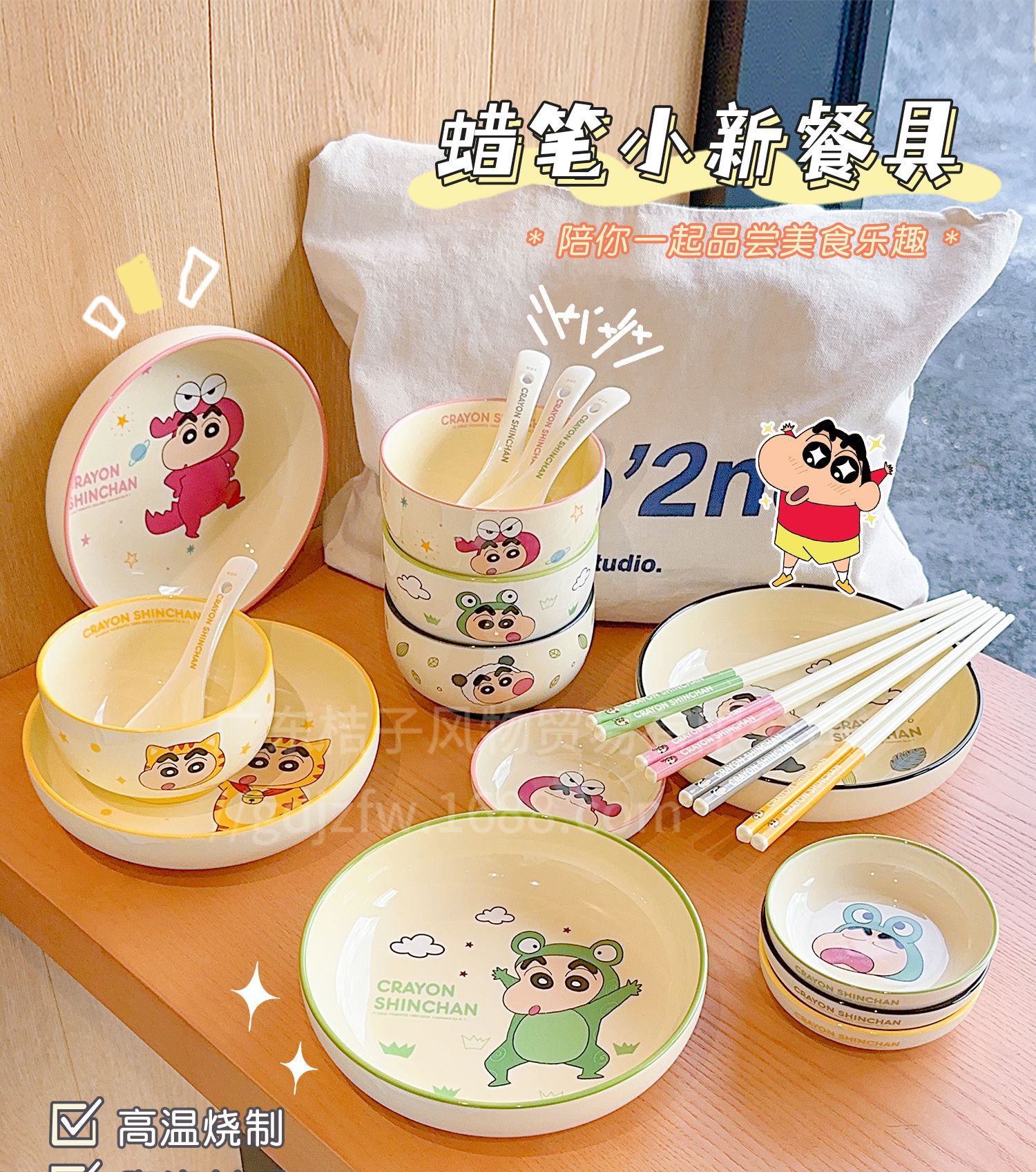 クレヨンしんちゃん共同ブランド丼陶器食器ボウルセットかわいい子供用ボウル高価値家庭用漫画陶器