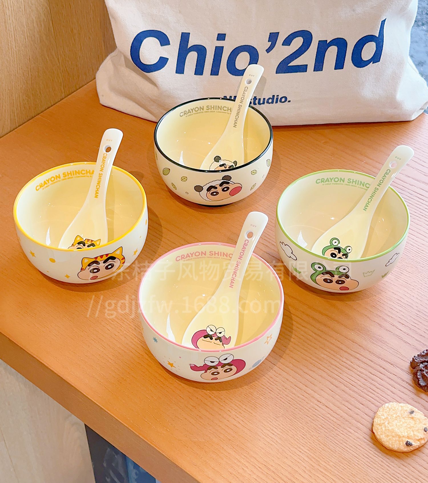 クレヨンしんちゃん漫画セラミックボウル高価値セラミック食器子供用家庭用丼ディナープレートスプーンかわいいスープボウル
