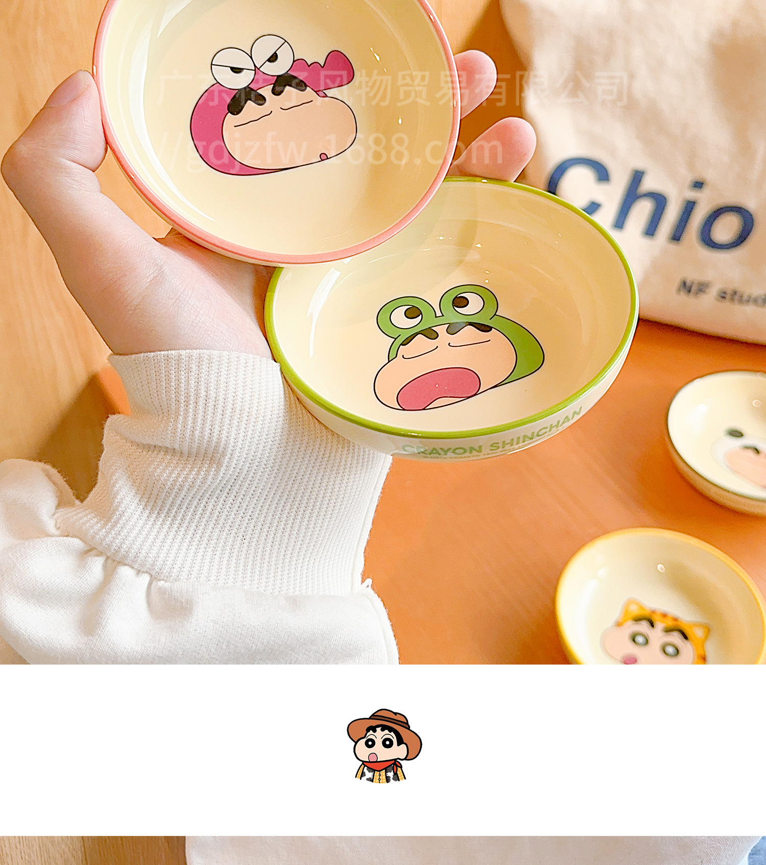 クレヨンしんちゃん陶磁器の味皿家庭用かわいい調味料皿漫画円形醤油皿高颜値調味料皿卸売り