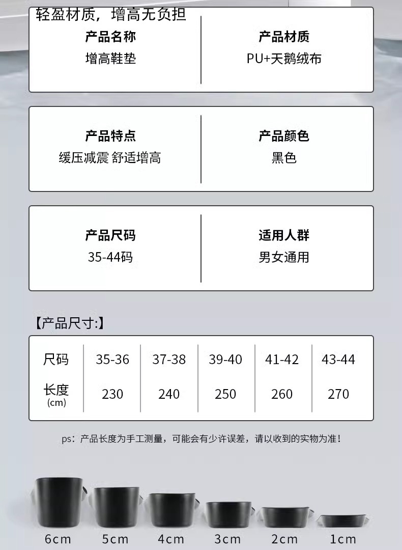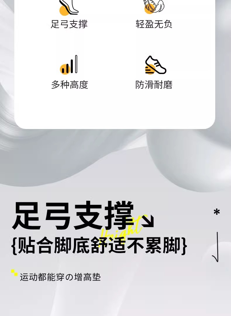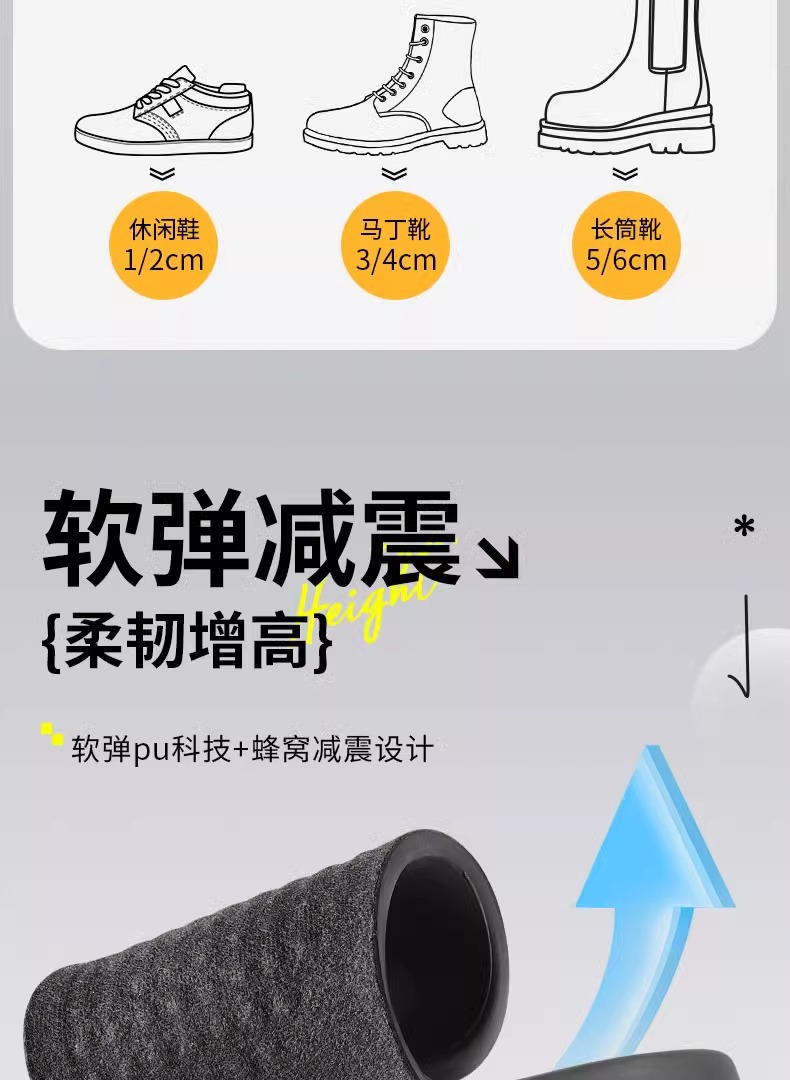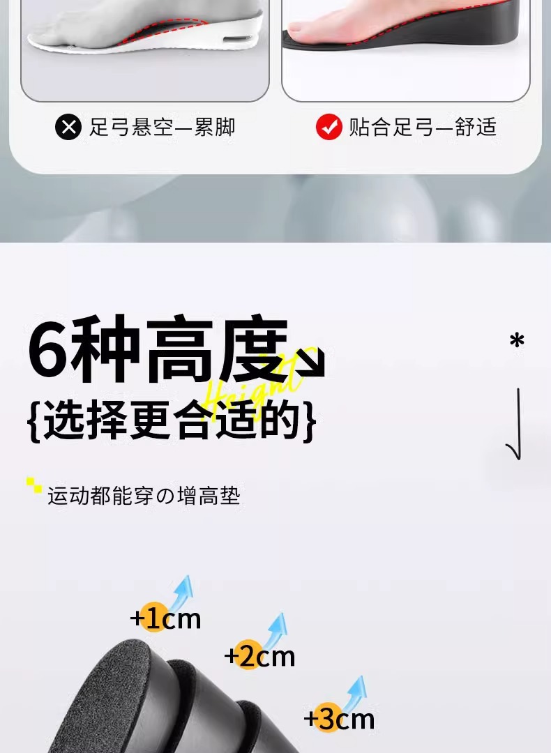 隐形增高鞋垫不累脚不塌陷男士内增高运动减震踩屎感女增高垫防臭
