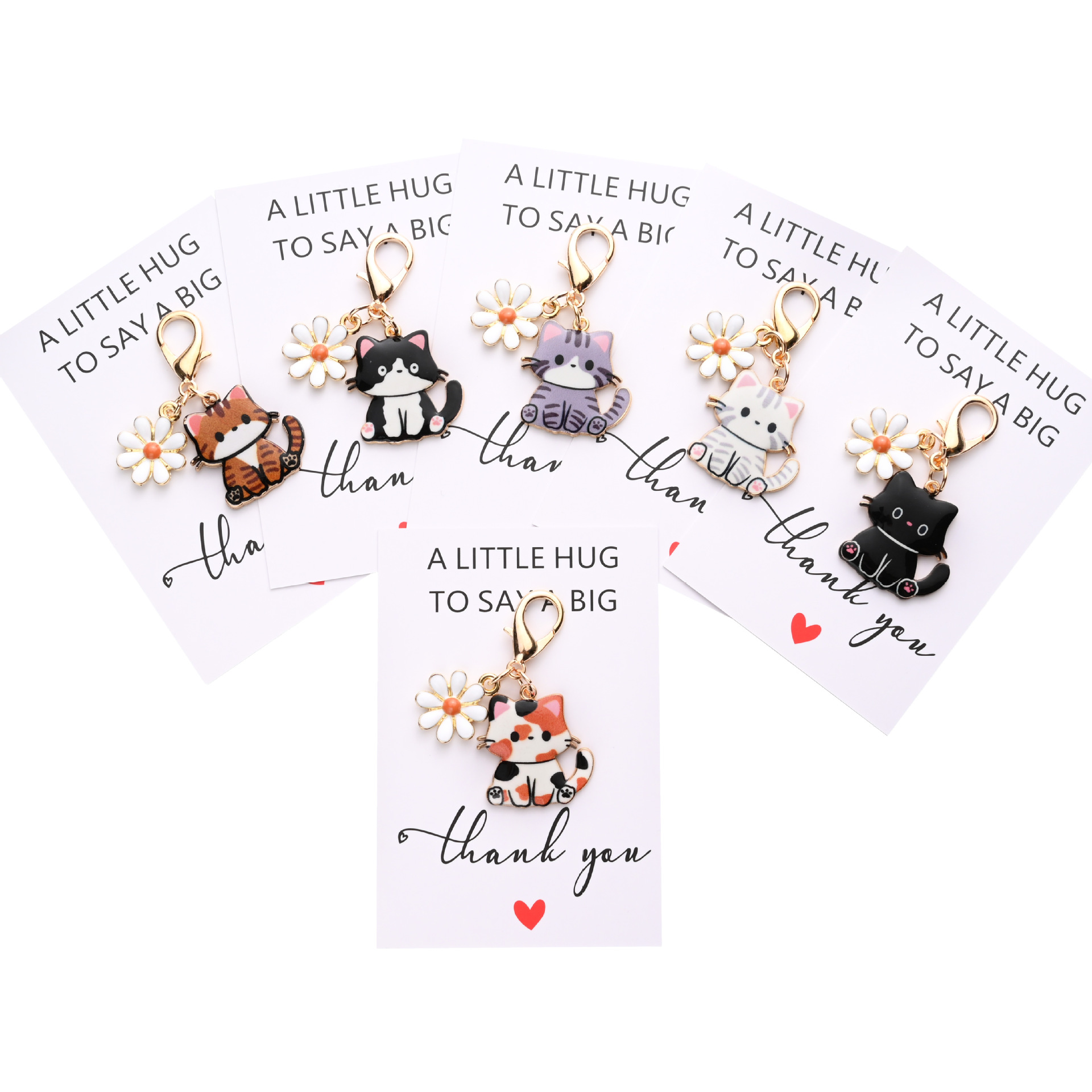 跨境A LITTLE HUG英文拥抱感谢卡可爱卡通小花猫咪钥匙扣包包挂件