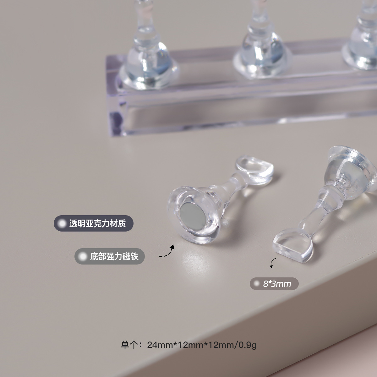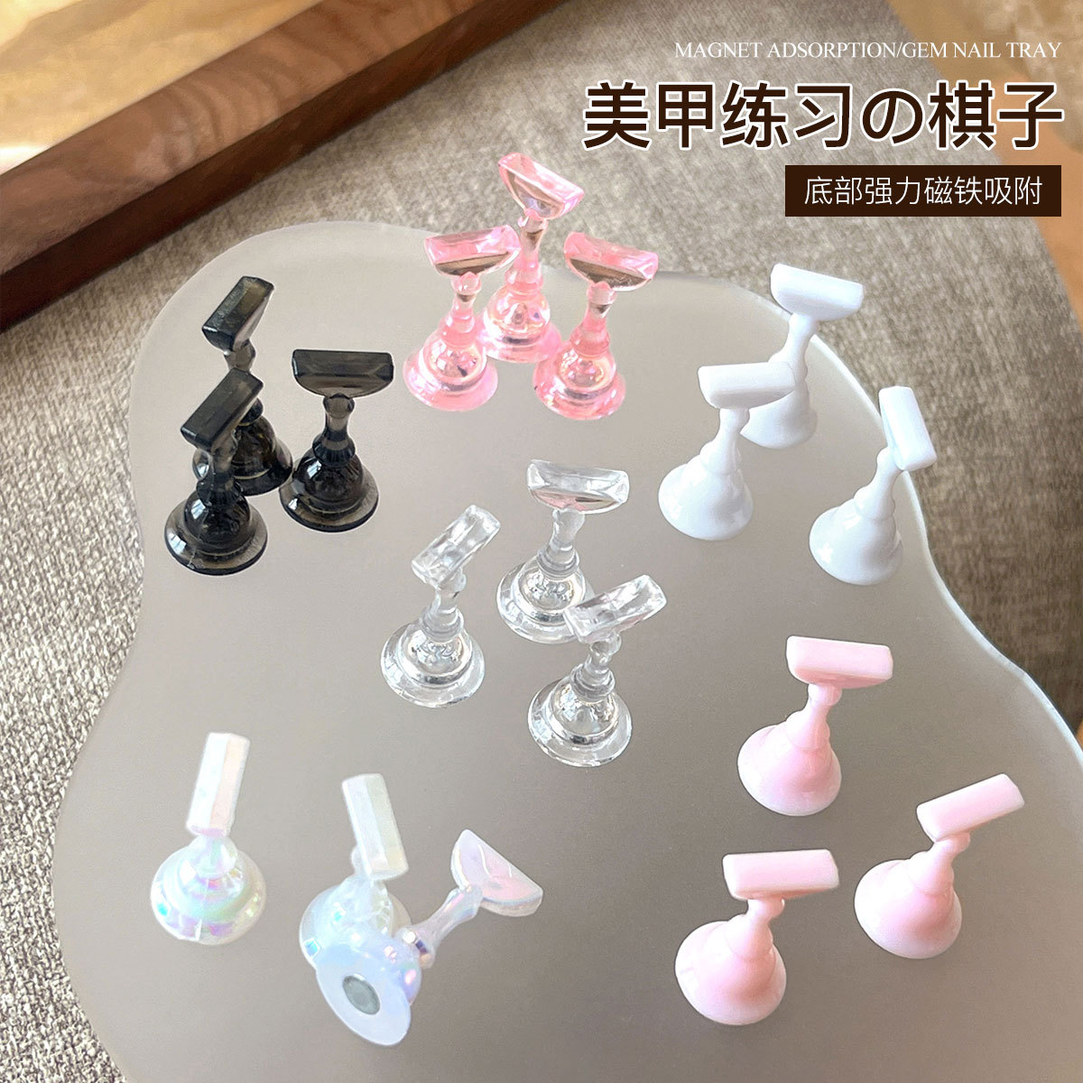 小号美甲甲托棋子透明塑料带磁铁冰透色底座展示架强磁穿戴甲工具