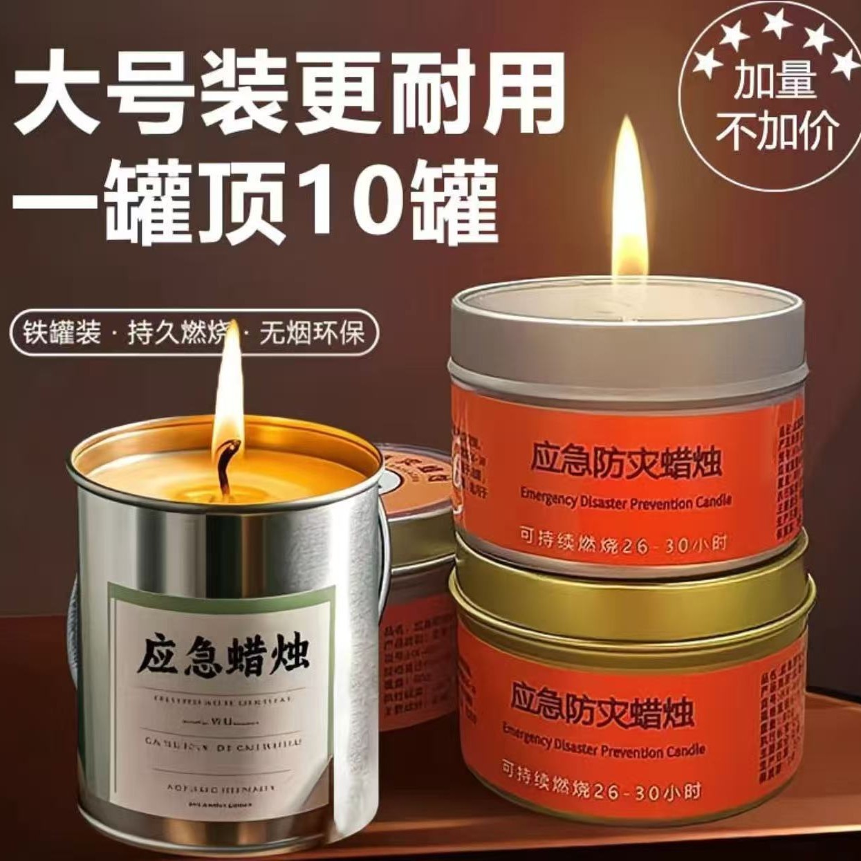 应急防灾停电照明蜡烛户外露营家用防风防水无烟味蜡烛灯铁罐批发