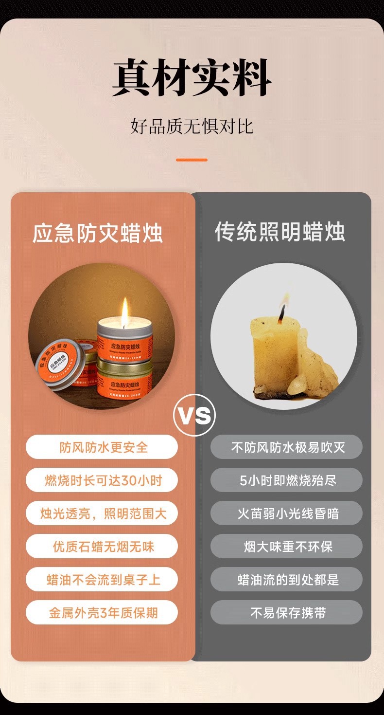 应急防灾蜡烛无烟无味家用停电照明备用地震紧急生存应急防风蜡烛