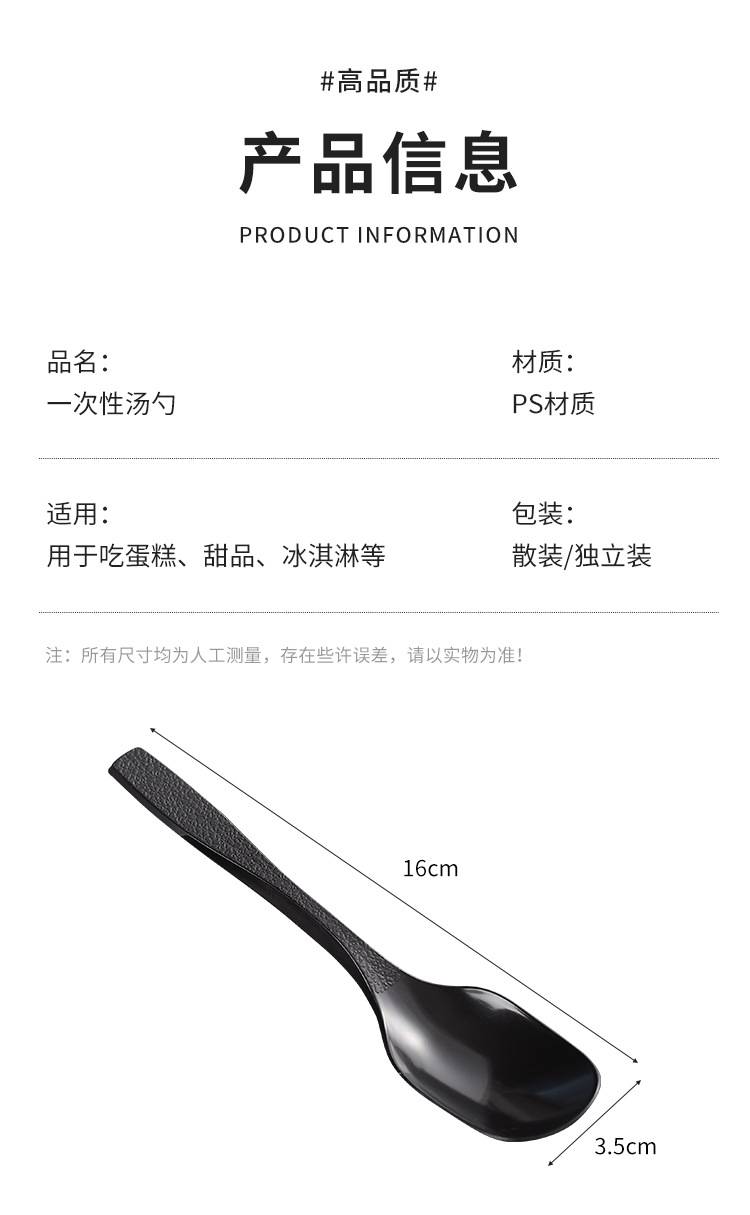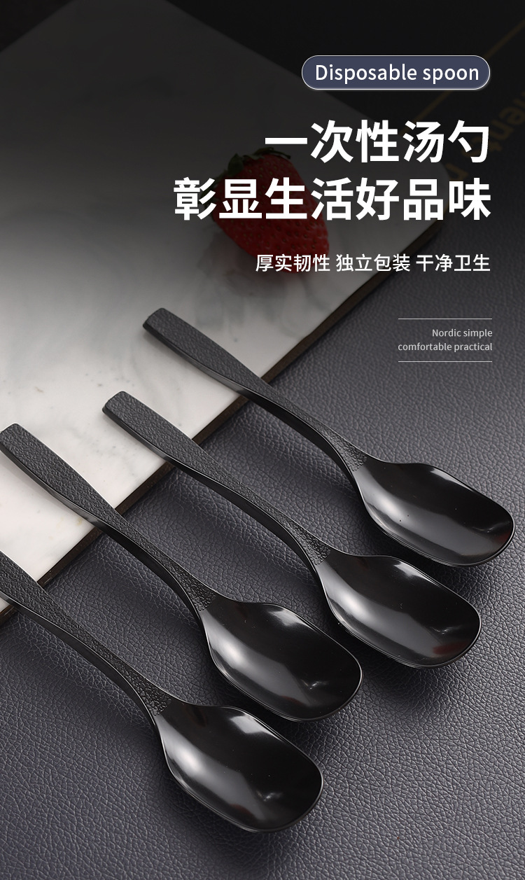 16cm ブラックダックビルスプーン シンプルパッケージ,16cm ブラックダックビルスプーン 個包装,15.5cm 黒透明中華スプーン シンプルパック,15.5cm 黒透明中華スプーン 個包装